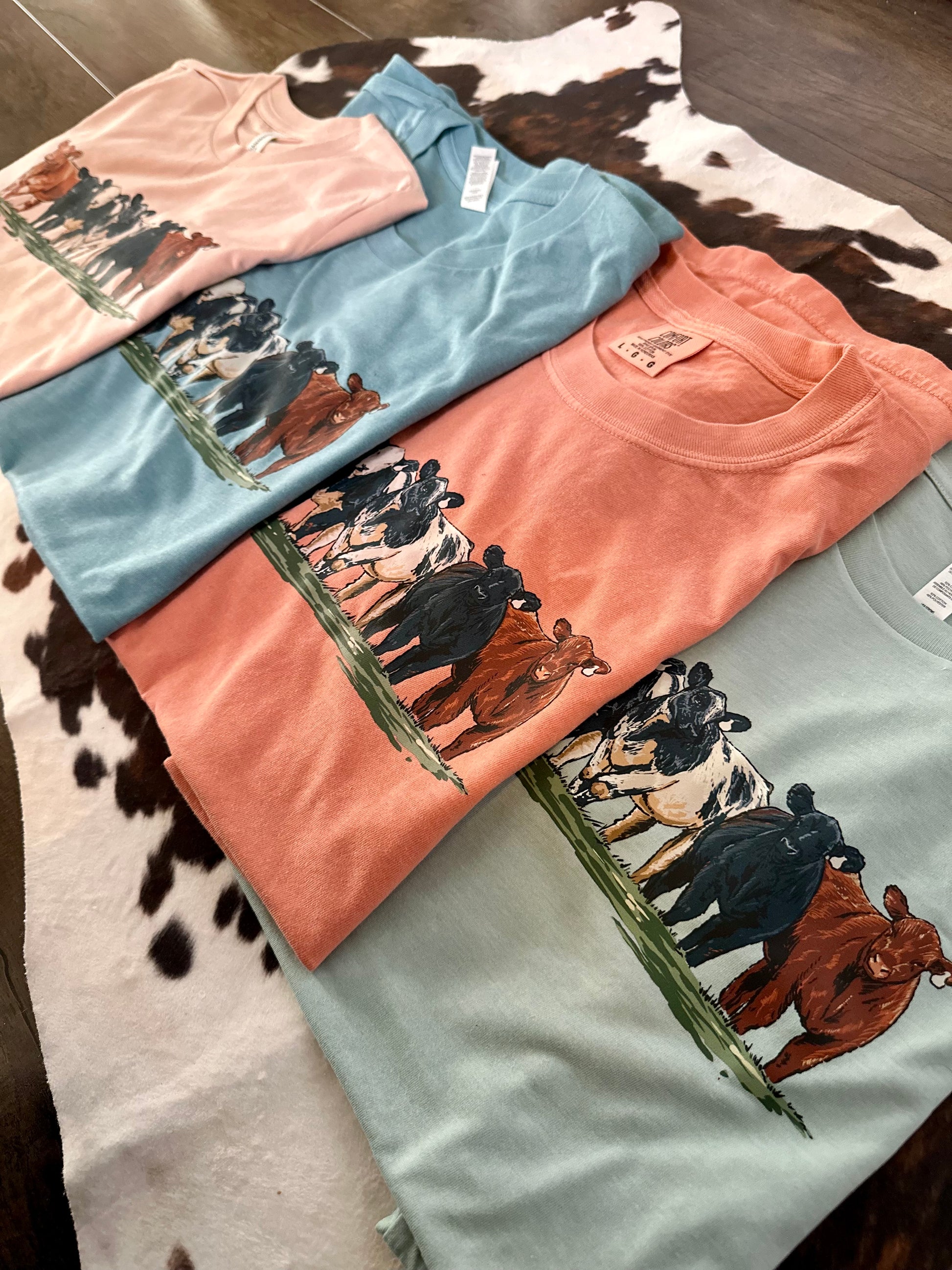 Featuring our exclusive Cattle Round Up design. Tee is made to order in Ohio. Design is printed using DTF Heat Transfer. In the instance the apparel color selection is unavailable, we will contact you with an alternative.